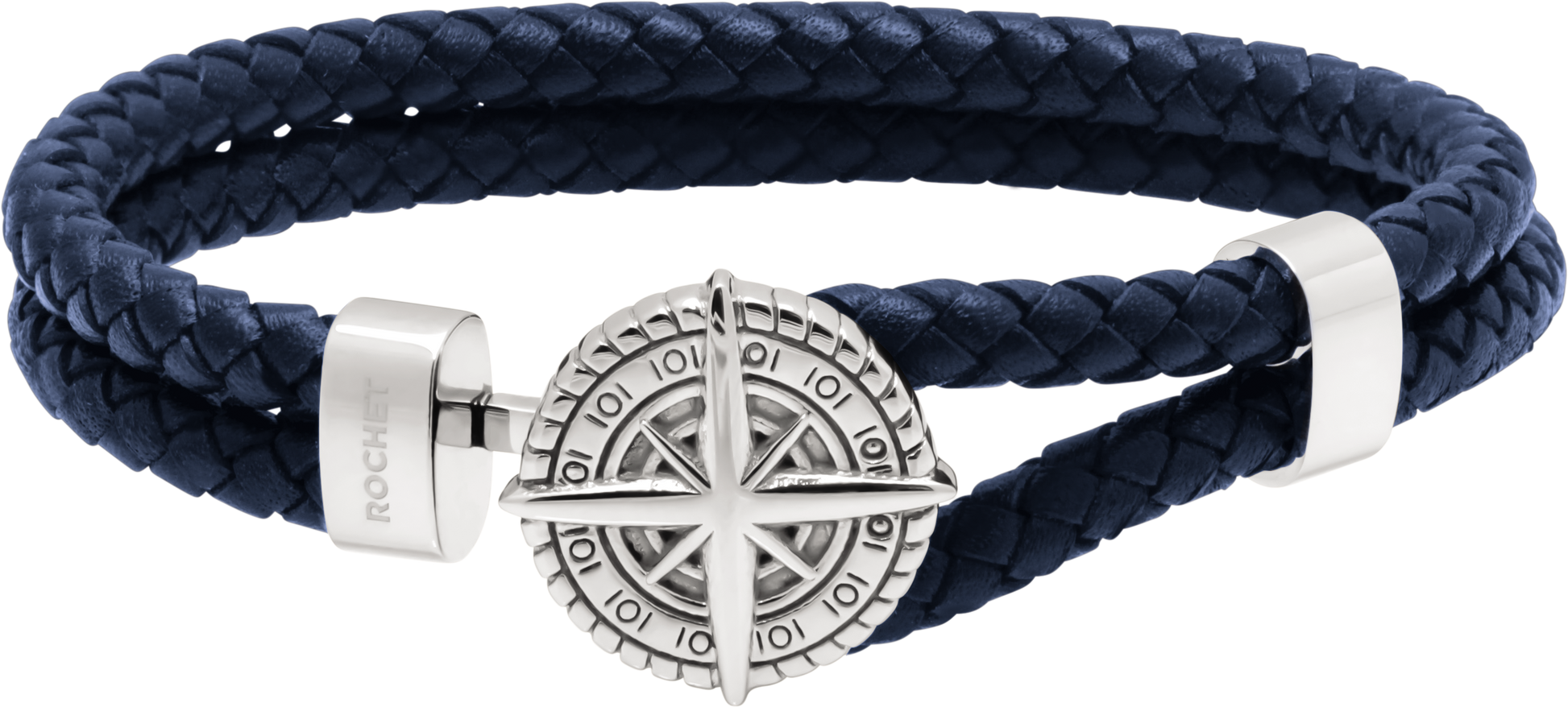 CAPE HORN: 10mm polished steel bracelet with brown braided leather straps. 21cm. One size