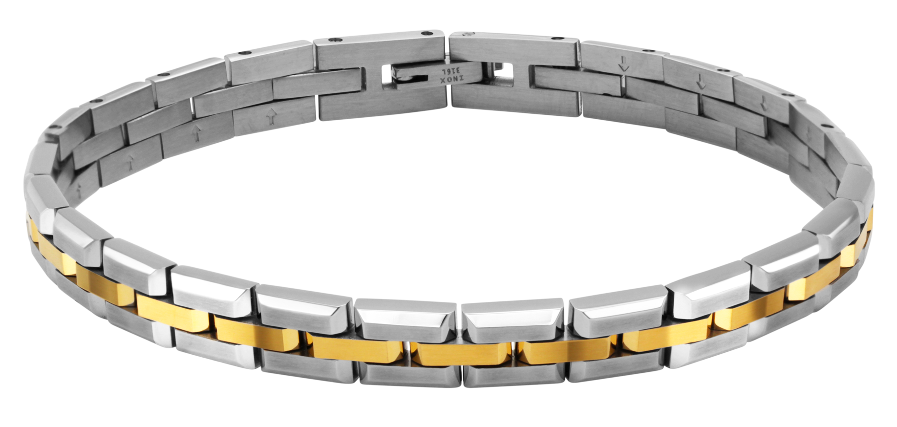 FACTORY: SATIN STEEL AND IP GOLD BRACELET. 7MM x 21CM