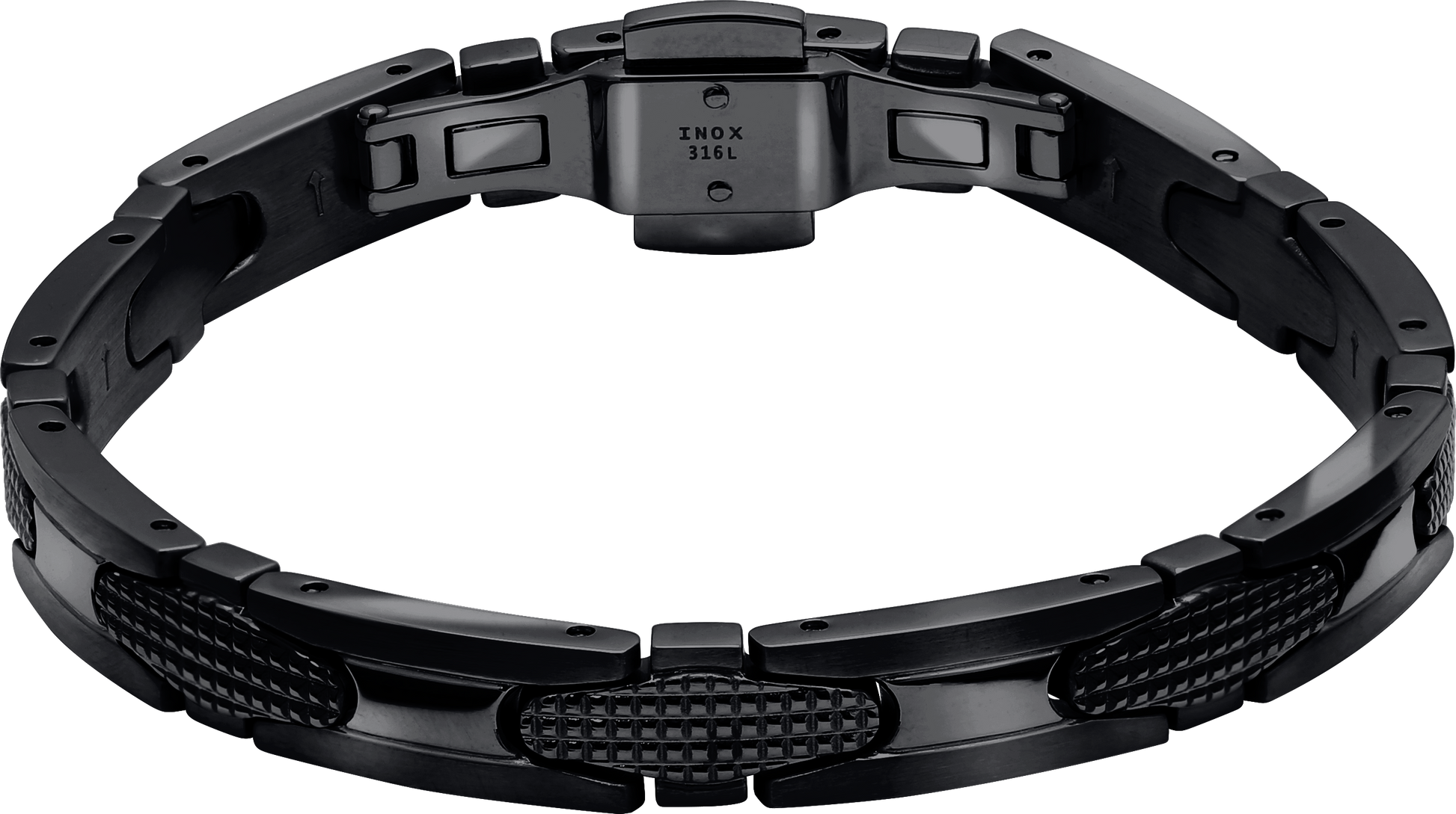 GATSBY: 8MM IP BLACK STEEL BRACELET, DIAMOND POINT PATTERN WITH BUTTERFLY BUCKLE. ADJUSTABLE.