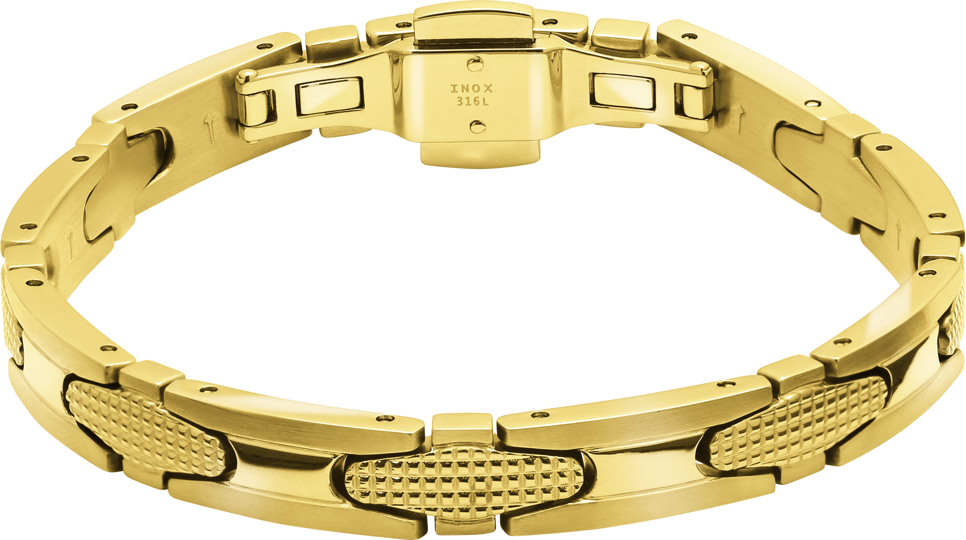 GATSBY: 8MM IP GOLD STEEL BRACELET, DIAMOND POINT PATTERN AND BUTTERFLY BUCKLE. 21CM ADJUSTABLE.