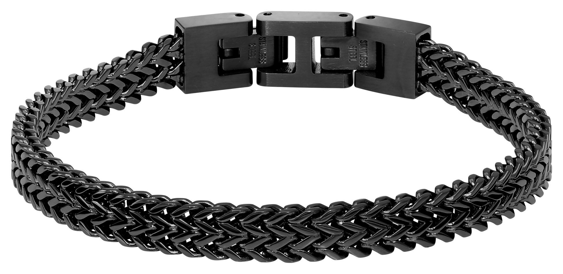 MAJOR 2: 7MM IP BIO GREY POLISHED STEEL BRACELET, 20.5MM ADJUSTABLE. UNIQUE DOUBLE BRAIDED DESIGN, DEATURING BOTH CUFF AND CHEVRON LINKS FOR A SOPHISTICATED REFINED LOOK.