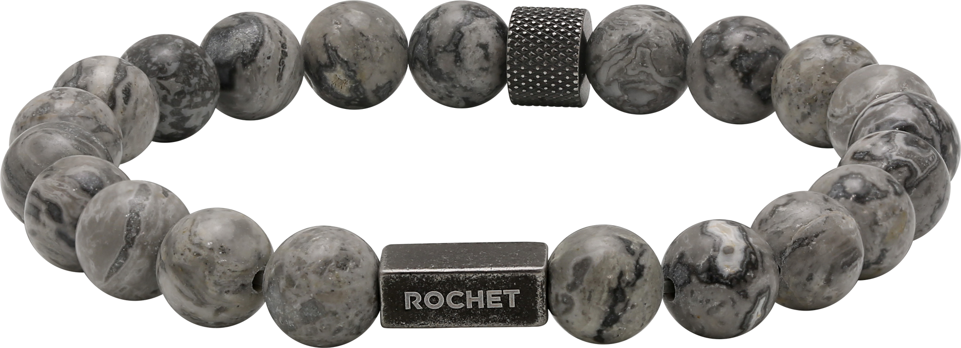 ZEN: 8MM GREY JASPERS AND KNURLED VINTAGE STEEL.